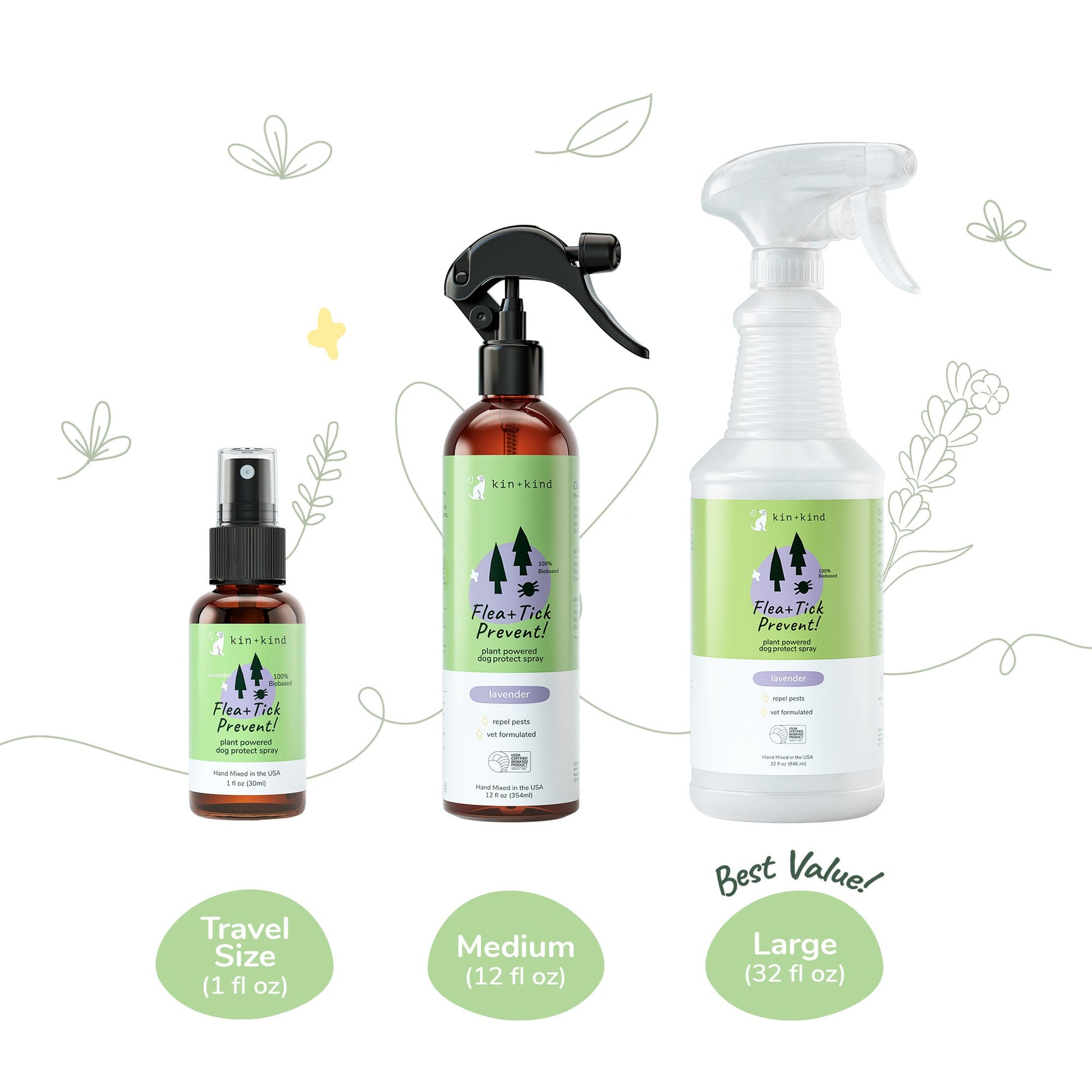 Kin+Kind Dog & Cat Flea + Tick Prevent! Protect Spray Lavender 12oz