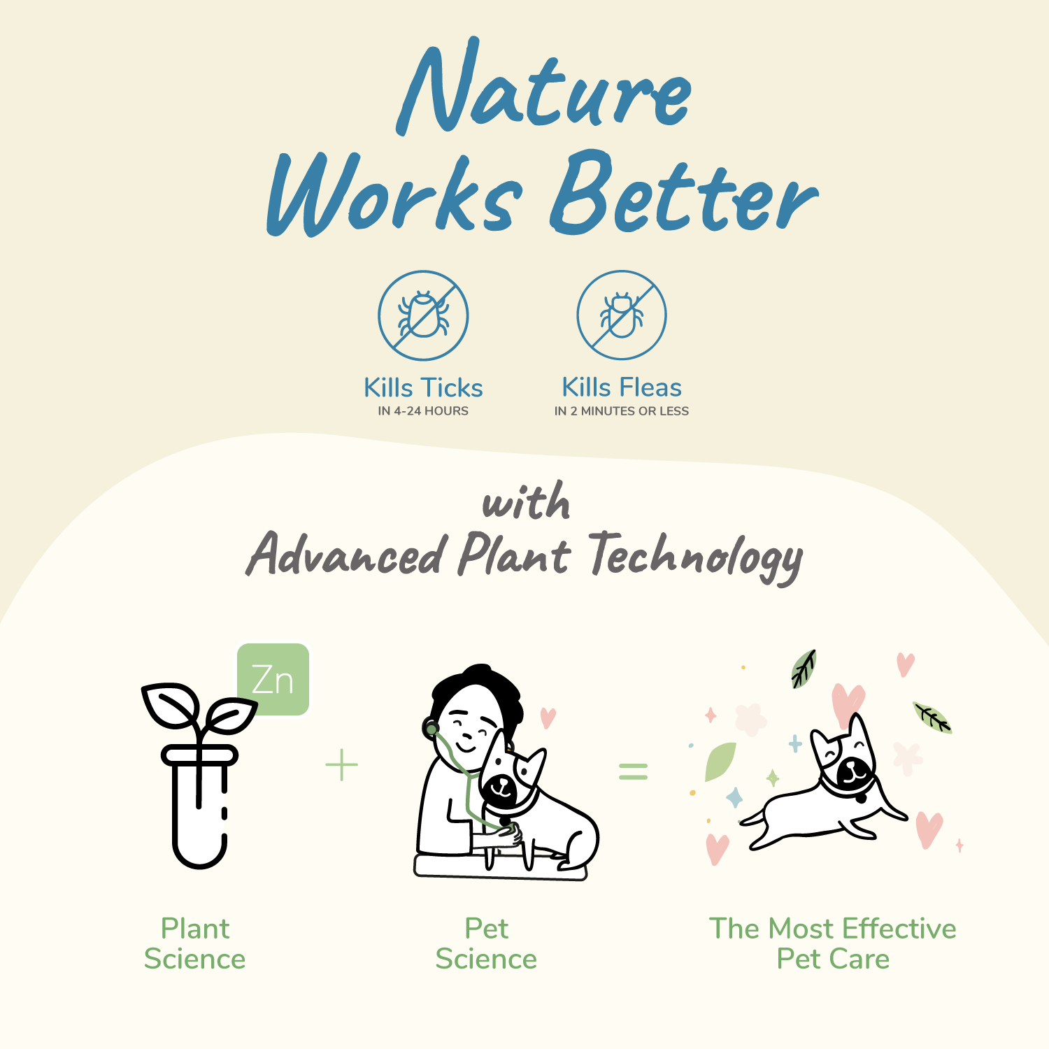 Plant Powered Flea+Tick Control. Our vet-formulated products use plant-based ingredients for happier pets and a healthier planet. Each ingredient, including every essential oil, is vet approved to ensure safe concentrations for your pet when used as directed. So apply with confidence!