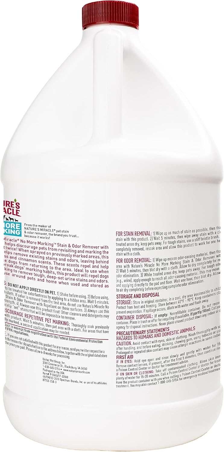Nature's Miracle Dog No More Marking Stain & Odor Remover with Repellent 24oz | 1 Gallon