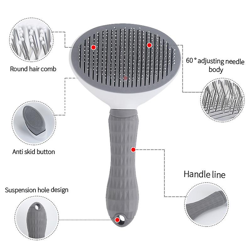 SMART DESIGN: The stainless steel needle boasts a 60-degree bending design with a certain level of flexibility. This thoughtful design not only provides a gentle massage for your pet, promoting healthy skin and preventing skin diseases, but it also enhances blood circulation and helps alleviate the stress associated with hair loss in pets.