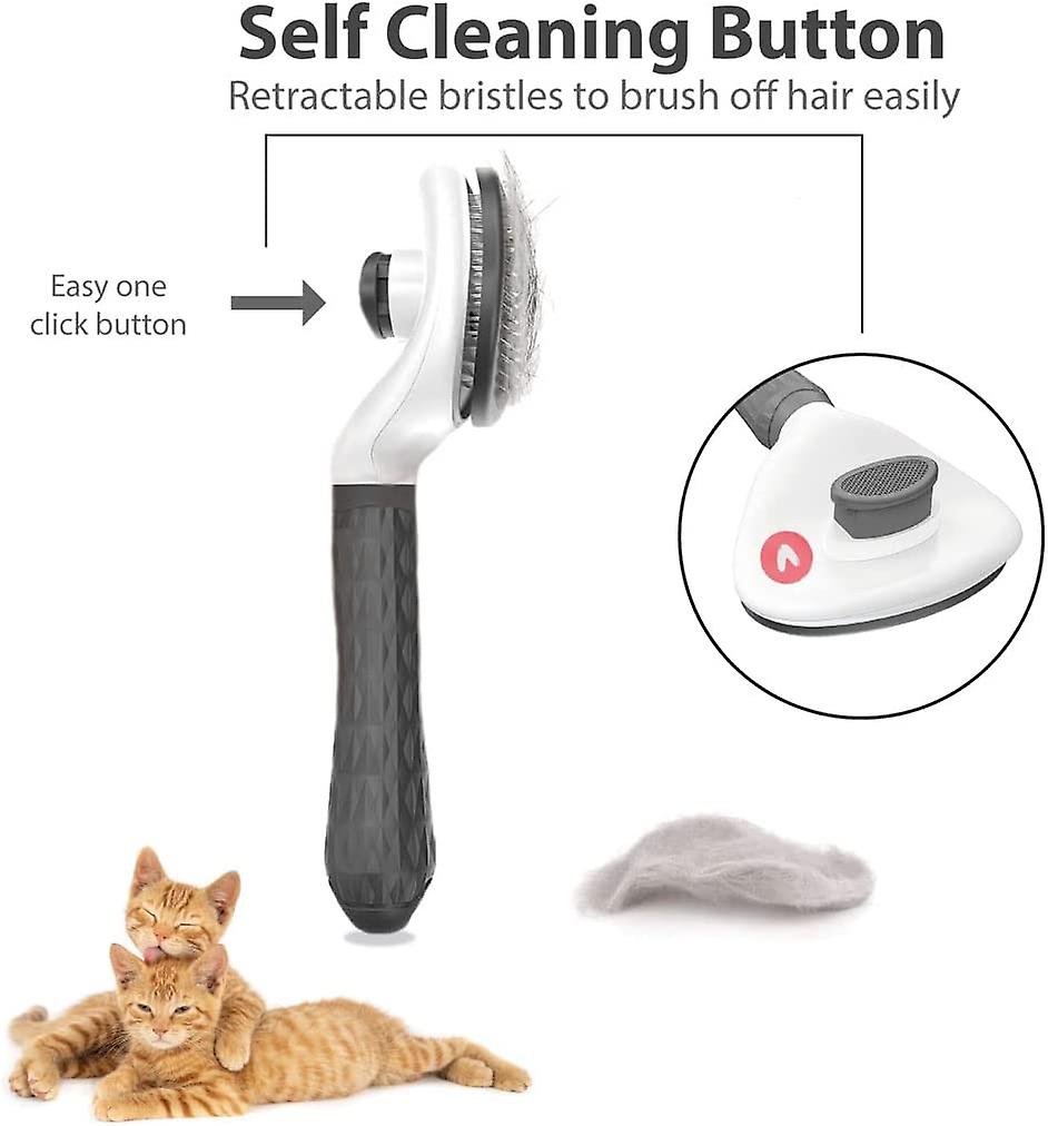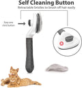 SIMPLE CLEANING: The Dog Brush and Cat Brush combo, equipped with a Grooming Comb, features an automatic hair removal button for effortless maintenance. The convenient push button simplifies the cleaning process by effortlessly releasing removed hair from the bristle edges. Just press the cleaning button, detach the bristles, and wipe them clean for easy storage.