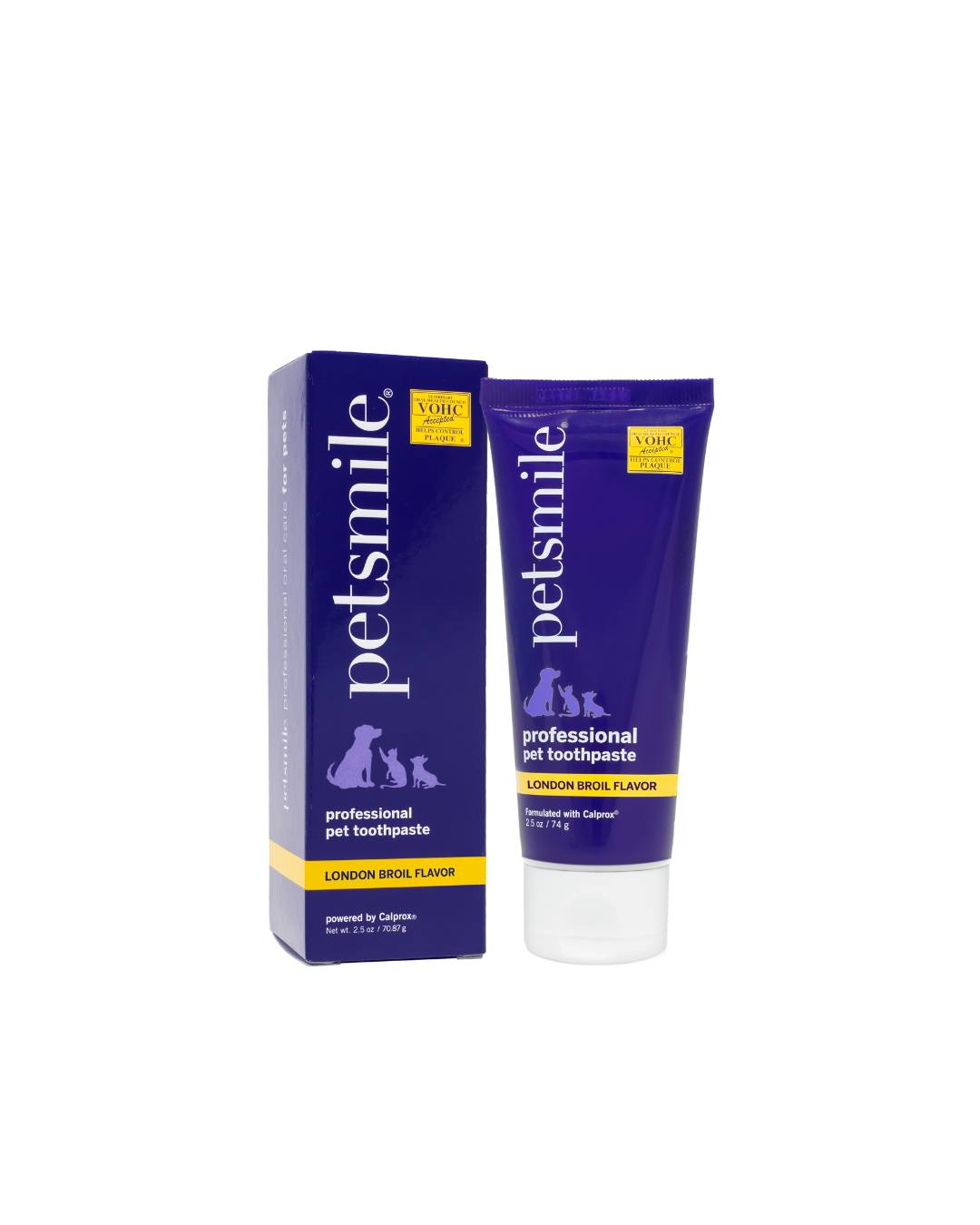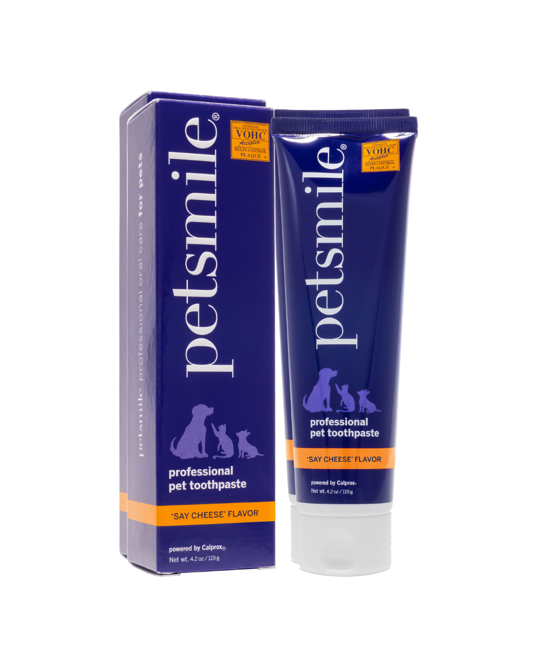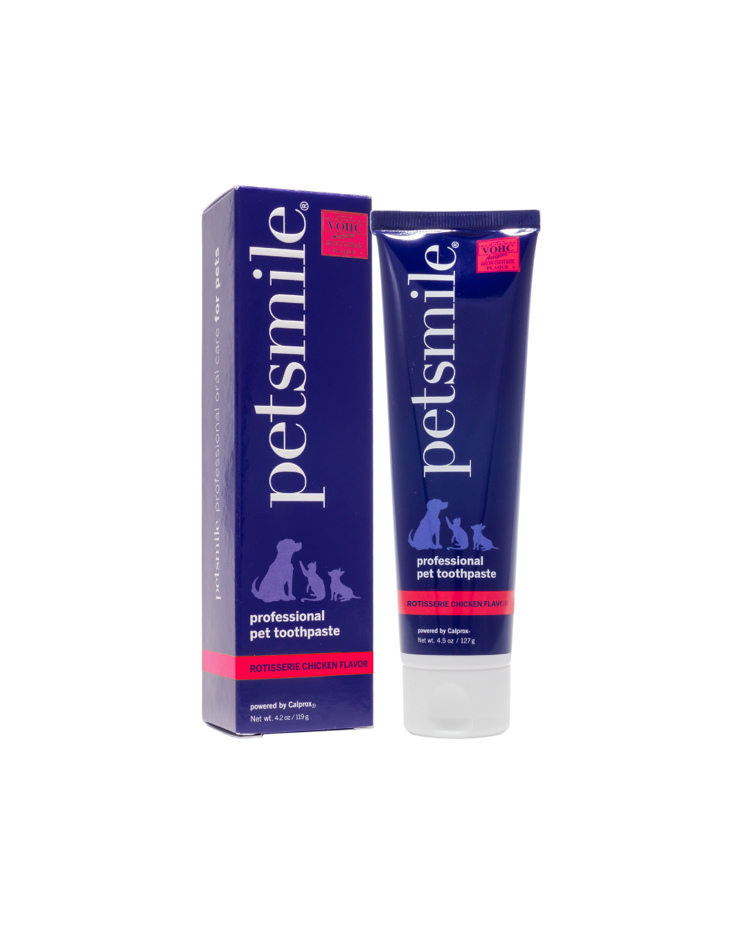 Petsmile is a premium pet toothpaste from the makers of supersmile®. It is the first and only pet toothpaste with the VOHC (Veterinary Oral Health Council) Seal of Acceptance for plaque inhibition, and is suitable for both dogs and cats. Its proprietary ingredient, Calprox®, helps dissolve the protein pellicle on the tooth surface where plaque, bacteria and stains stick.