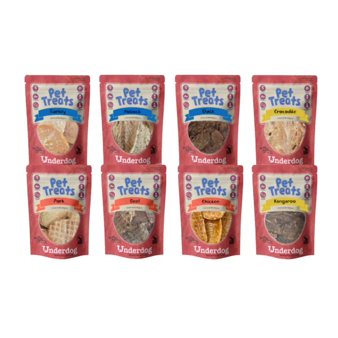 Underdog Air-Dried Dog Treats 80g - Pork, Beef, Chicken, Duck, Pollock, Kangaroo, Crocodile, Turkey, Venison